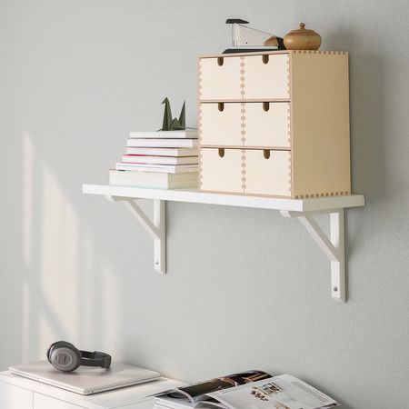Навесной полочный модуль позволяет максимально эффективно использовать пространство стены, освобождая место на полу.