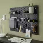 Настенная панель с аксессуарами СКОДИС помогает навести порядок и быстро находить нужные вещи.
