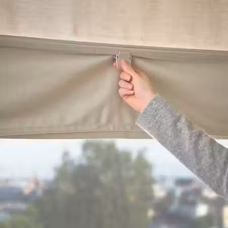 Элегантная римская штора RINGBLOMMA бежевого цвета выполнена из похожей на лён ткань, пропускающей свет и создающей уютную атмосферу.