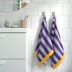 Это мягкое, хорошо впитывающее полотенце из смеси хлопка с вискозой, украшенное смелым узором из фиолетовых полос, освежит интерьер ванной. Оно прекрасно сочетается с золотисто-желтым полотенцем ВОГШЁН и шторой для ванной СНОЙОНКВИЛЛ.