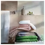Разные цвета — прекрасно сочетаются с другим текстилем и аксессуарами в ванной.