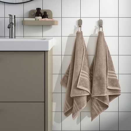 Мягкое и пушистое бежевое полотенце ГУЛВИАЛ средней толщины (плотность 500 г/м²) изготовлено из хлопка, обладает прочностью и хорошо впитывает влагу.