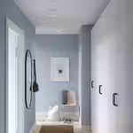 Эта потолочная шина с 2 софитами почти незаметна на белом потолке и обеспечивает нужное вам направление света, так как положение каждого софита регулируется индивидуально.