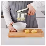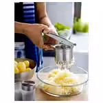 Картофельное пюре — прекрасный гарнир и к мясу, и к рыбе. Приготовить его вам поможет этот прочный кухонный приборы из нержавеющей стали. Просто положите отварной картофель в пресс и выдавите через маленькие отверстия.