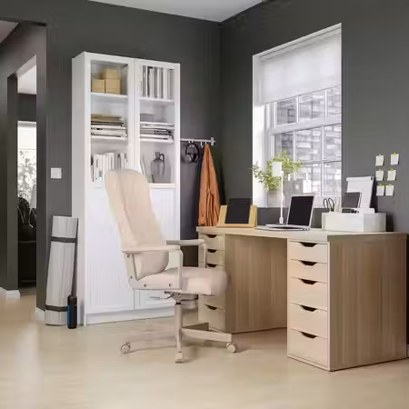 Ограниченное пространство не означает, что вам придется отказаться от учебы или работы из дома. Этот стол занимает мало места на полу, но при этом укомплектован двумя тумбами с ящиками, в которых можно хранить бумаги и другие