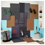 Придверный коврик BETALVÄG из кокосового волокна украшен эффектным геометрическим узором чёрного цвета, который придаёт прочному натуральному материалу современный вид.