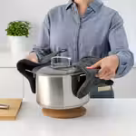 Повесьте ее на крючок на кухне и используйте, когда нужно будет слить воду после варки картофеля или овощей.