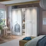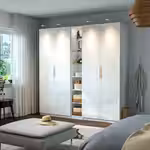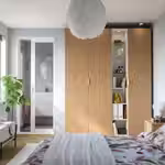 Добавьте к своему гардеробу PAX этот промежуточный модуль — в нём можно расставить красивые предметы и хранить любимую одежду и аксессуары. А с помощью стеклянных и деревянных полок с регулируемой высотой вы легко адаптируете пространство под