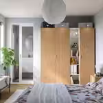 Добавьте к своему гардеробу PAX этот промежуточный модуль — в нём можно расставить красивые предметы и хранить любимую одежду и аксессуары. А с помощью стеклянных и деревянных полок с регулируемой высотой вы легко адаптируете пространство под