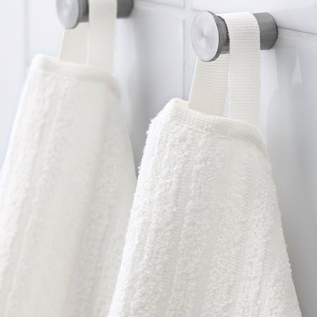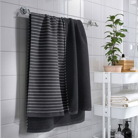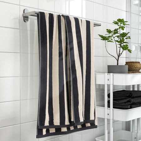 Яркие полоски прекрасно сочетаются с однотонными полотенцами VÅGSJÖN.