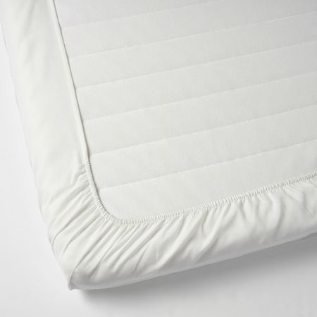 Натяжная простыня на резинке подходит для матрасов толщиной до 26 см.