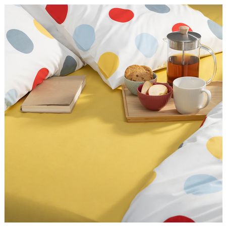 Натяжная простыня ДВАЛА изготовлена из дышащей и поглощающей влагу хлопковой ткани, что обеспечивает ровную и комфортную температуру в течение всей ночи.