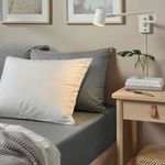 Простыни и наволочки РЁННВЕККМАЛ из высококачественного хлопкового перкаля на ощупь кажутся прохладными.