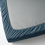 Натяжная серо-зеленая простыня ДВАЛА изготовлена из дышащей и поглощающей влагу хлопковой ткани, что обеспечивает ровную и комфортную температуру в течение всей ночи.