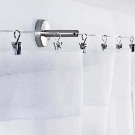 Дополните гардинную струну одним или несколькими креплениями для большей прочности, если вы хотите ее удлинить или расположить под углом.