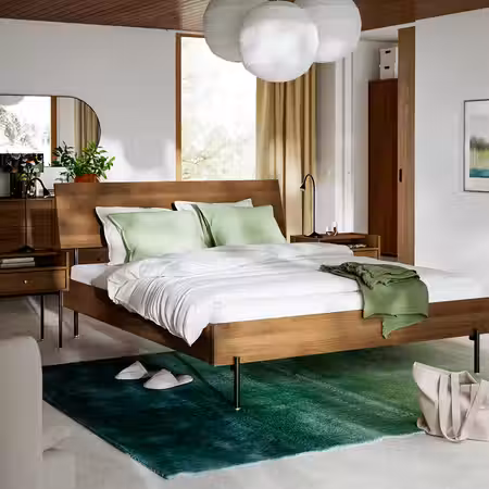 Реечное дно LURÖY с изогнутыми ламелями поддерживает тело и поглощает его вес, при этом открытая конструкция позволяет воздуху циркулировать, сохраняя матрас свежим.