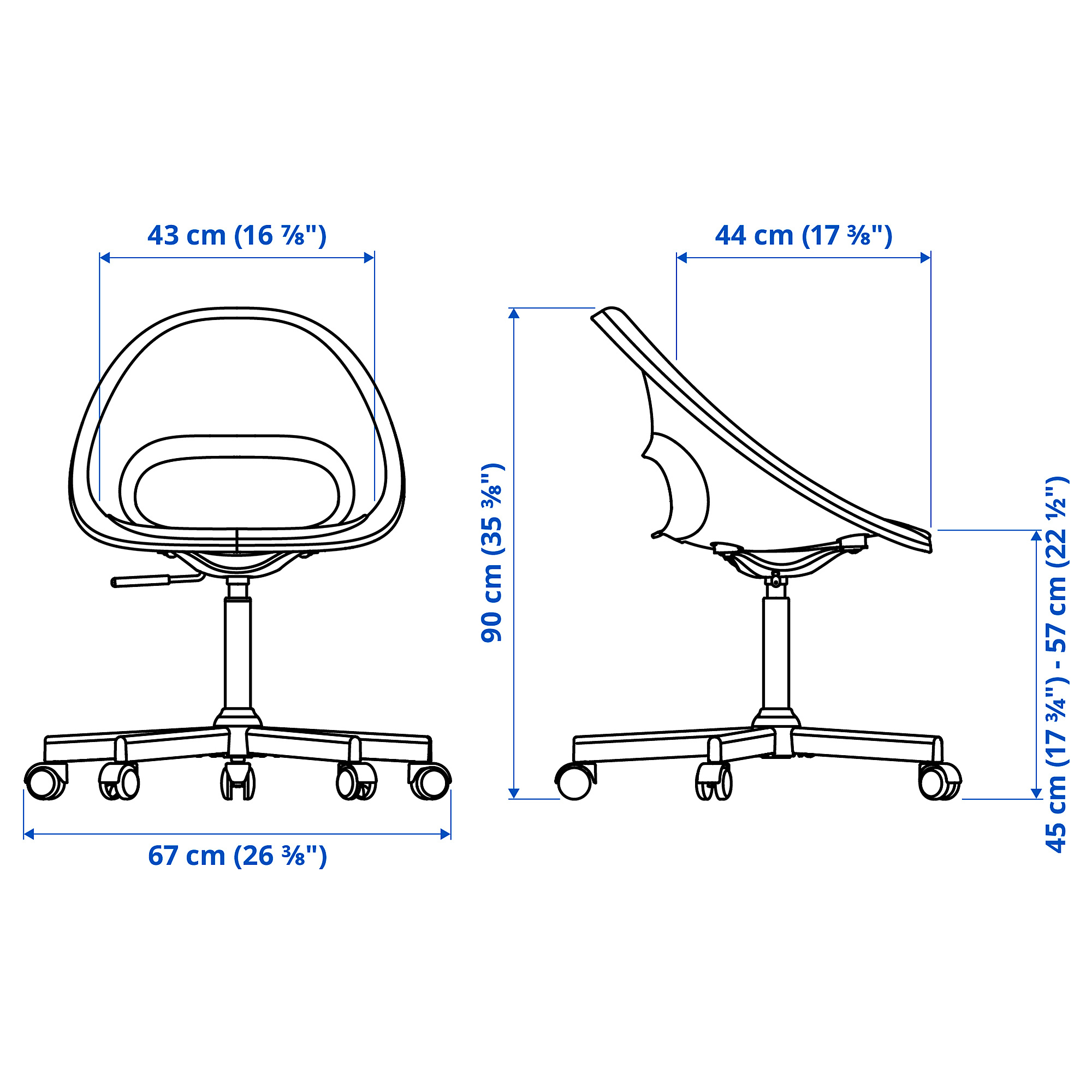 Особенности «MALSKÄR МАЛЬСКЭР, ELDBERGET ЭЛДБЕРГЕТ рабочий стул + подушка, темно-серый, оранжевый» отмеченные производителем IKЕА: