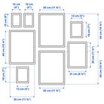 В набор входит: 8 рам с постерами (2 шт. 10x 15 см, 2 шт. 13x 18 см, 1 шт. 21x 30 см, 3 шт. 30x 40 см) и 2 шаблона для развешивания.