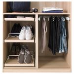 В гардеробе ПАКС вы сможете хранить много вещей на малой площади. Здесь есть платяные штанги для короткой и длинной одежды на плечиках, вентилируемые корзины, а также ящики и выдвижные полки, пространство которых можно оптимизировать с помощью