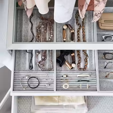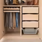 Установите его в каркас гардероба ПАКС шириной 100 см, дополните внутренними элементами КОМПЛИМЕНТ шириной 50 см — и наслаждайтесь идеальным порядком.