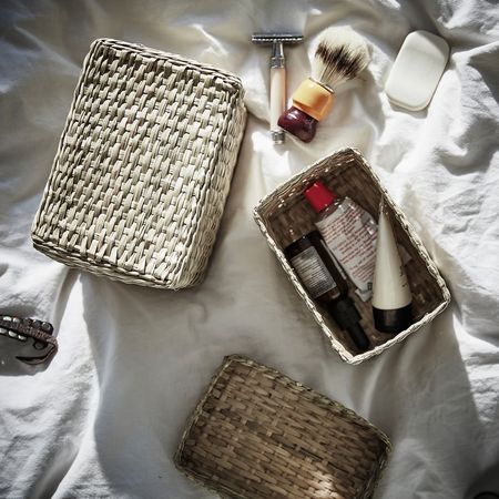 Благодаря сочетанию мягкой фетровой ткани и блестящих латунных заклепок корзины выглядят стильно.