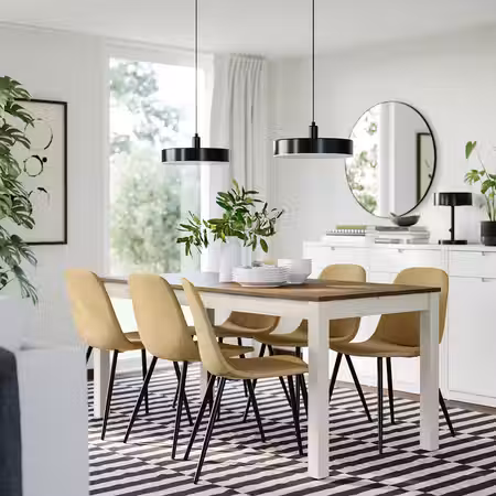 Этот стол на 4 человек легко разложить с помощью вкладных досок, чтобы за ним комфортно разместились 6 человек.