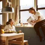 Вкладную доску легко достать и установить, а когда гости уйдут — снова убрать под столешницу.