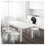2 вкладные доски прилагаются. Раскладной обеденный стол на 4-6 человек; 2 вкладные доски позволяют регулировать размер стола. Вкладные доски удобно хранить под столешницей.