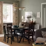 Этот стол на 4 человек легко разложить с помощью вкладной доски, чтобы за ним комфортно разместились 6 человек.