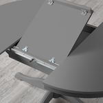 1 вкладная доска прилагается. Раскладной обеденный стол на 4-6 человек; 1 вкладная доска позволяет регулировать размер стола. Функция защелкивания; дополнительная столешница плотно задвигается. Вкладную доску удобно хранить под столешницей.