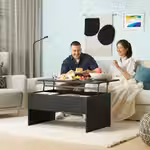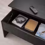 Этот журнальный стол делает гостиную более функциональной и помогает легко переключаться между разными занятиями, так как столешницу можно в любой момент поднять или опустить.