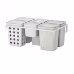 В этой комбинации 5 контейнеров для сортировки банок, небольших упаковок, лампочек и батареек и 1 контейнер для органических отходов.