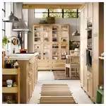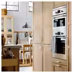 Матовые фасады кухонных шкафов УППЛЁВ бежевого цвета выполнены в утонченном современном стиле и дополнены скошенными краями и встроенными ручками в тон.