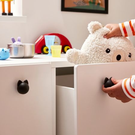 Забавная ручка на дверце шкафа или ящике будет пробуждать воображение, к тому что это простой способ освежить мебель и адаптировать её под ребёнка.