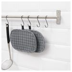 Используйте крючки для хранения кухонных принадлежностей на стене, а также в шкафах и ящиках. Также можно использовать в помещениях с высокой влажностью. Можно использовать с рейлингом ГРУНДТАЛЬ.