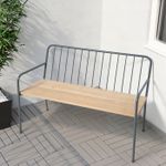 Прочная скамья с простым в уходе каркасом из стали с порошковым покрытием и сиденьем из массива дерева.
