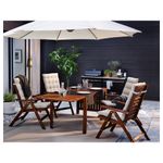 Спинку можно установить в одном из пяти положений. Легко сложить и убрать. Сделайте мебель максимально комфортной, дополнив ее понравившейся подушкой на сиденье. Мебель обработана полупрозрачной морилкой в несколько слоев.