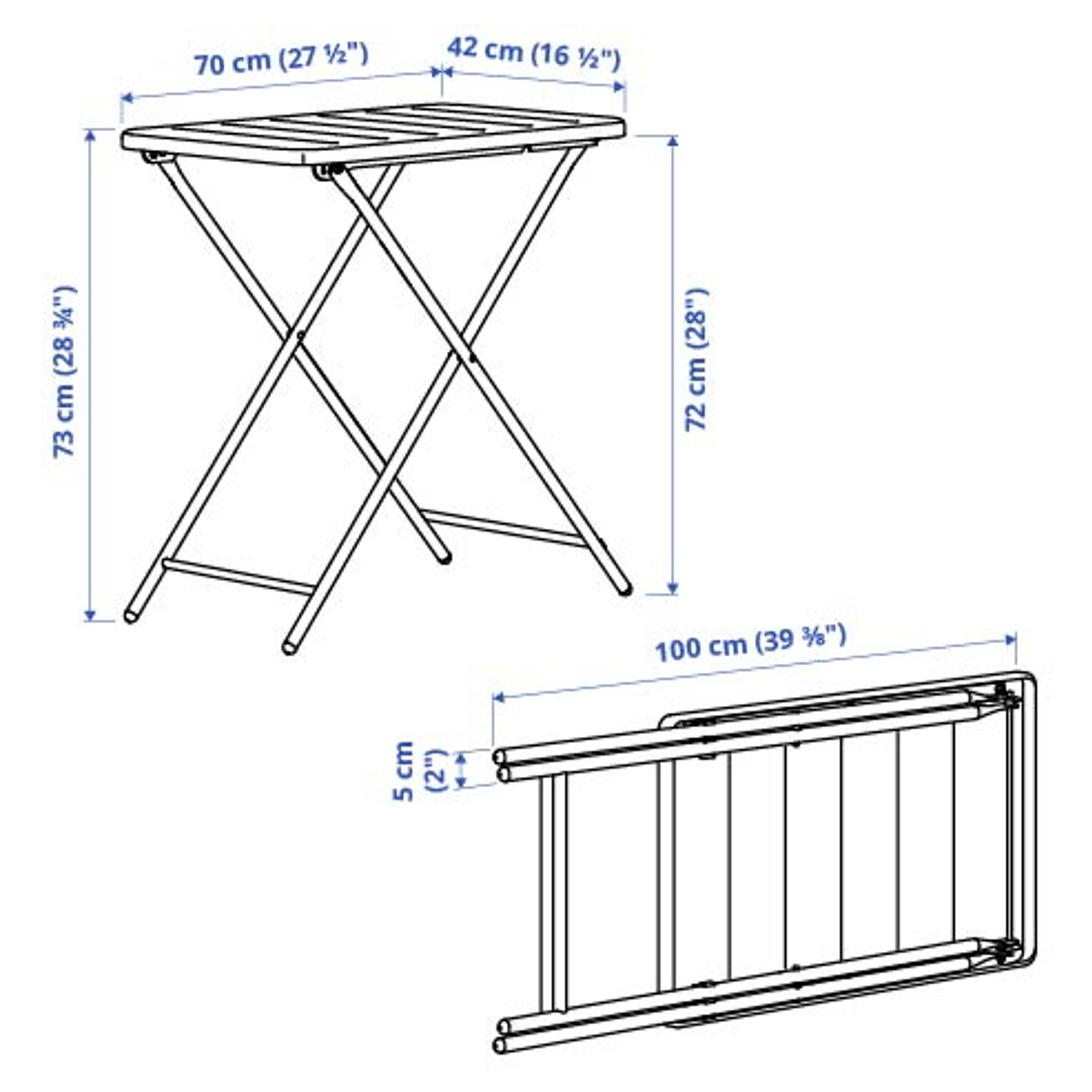 Садовый Стол + 2 складных стула, складной белый, белый, 70x42 см IKEA TORPARÖ ТОРПАРЁ включает в себя следующие материалы: