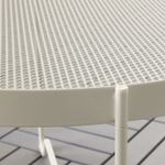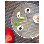 Прочный и простой в уходе столик.Столешница из металлической сетки делает дизайн легким и воздушным. А дождевая вода стекает через сетку, не скапливаясь на столешнице.Благодаря бортику столик удобно переносить.