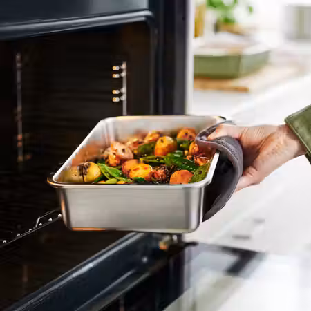 Практичный контейнер, в котором можно готовить в духовке, подавать приготовленное на стол и хранить оставшуюся часть в холодильнике.