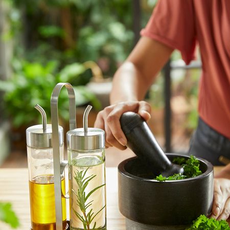Этот комплект прекрасно смотрится и на кухонной столешнице, и на обеденном столе. Вы сразу поймете, когда придет время доливать воду, поскольку бутылки сделаны из прозрачного стекла.