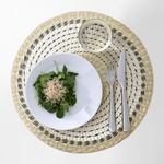 Круглая форма и выразительный тканый орнамент дополнят сервировку, а коврик защитит поверхность стола.