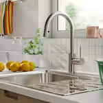 Хромированный смеситель ГЛИТТРАН традиционного дизайна помогает сокращать расход воды и энергии, которая требуется на ее нагревание, что позволяет вам экономить на оплате коммунальных услуг.