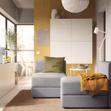 Козетку можно поставить слева или справа, чтобы разместить диван с учетом имеющегося пространства и ваших предпочтений.