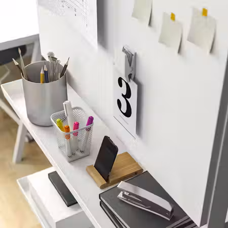 Письменный стол обеспечит достаточно места для работы и практичное хранение папок, блокнотов и других вещей, которые удобно иметь под рукой.
