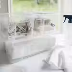 Протирать мягкой влажной тканью, при необходимости можно использовать слабый мыльный раствор.