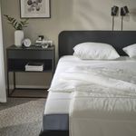 Натяжная серо-зеленая простыня ДВАЛА изготовлена из дышащей и поглощающей влагу хлопковой ткани, что обеспечивает ровную и комфортную температуру в течение всей ночи.