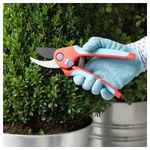 Благодаря прочным лезвиям из нержавеющей стали и силиконовому покрытию ручек легко обрезать толстые стебли и ветки. Хранить в недоступном для детей месте. Длина: 21 см. Верхняя часть: Сталь, Антипригарное покрытие.