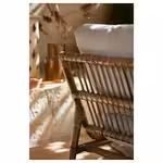 «В основе TVARÖ лежит идея создать минималистичный дизайн с акцентом на естественной красоте ротанга. Если посмотреть на кресло сзади, вы увидите красивое ручное плетение. Конструкция позволяет объединять несколько секций в садовый диван или использовать их в качестве удобных кресел. Благодаря малому весу мебель из ротанга легко перемещать, чтобы создавать разные решения в зависимости от ваших потребностей и пространства — это особенно удобно, когда вы создаете зону отдыха в саду».