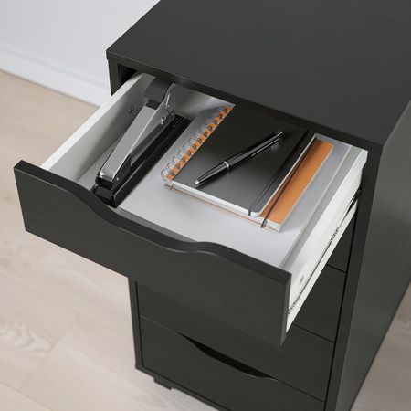 Особенности «ALEX АЛЕКС секция с 9 ящиками, черно-коричневый, 36×116 см» отмеченные производителем IKЕА: